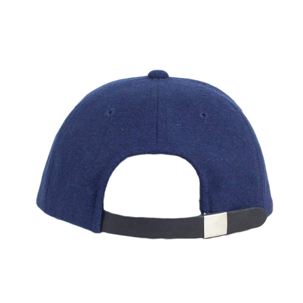 6パネルボールキャップ後ろ調整は本革スライド式メタルバックル。