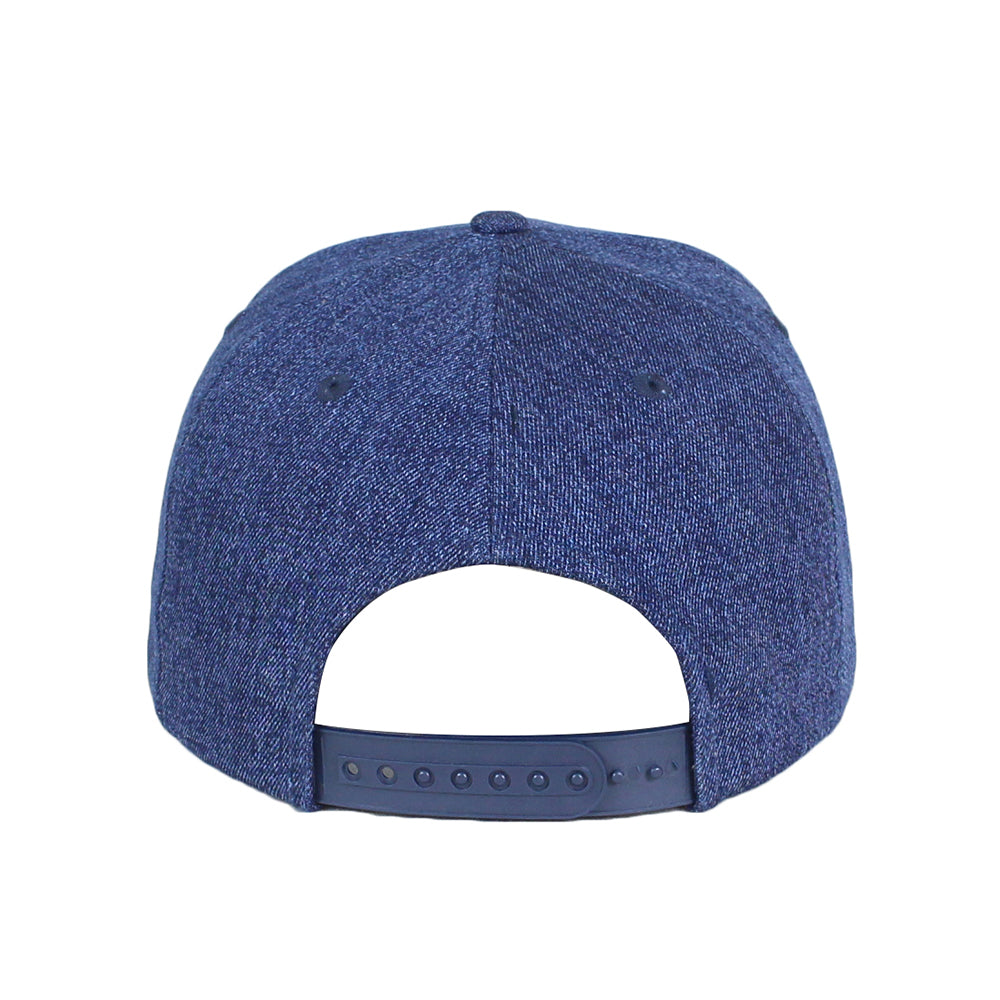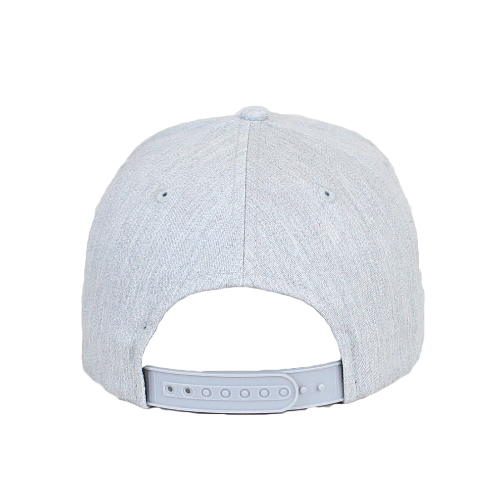 5パネルスナップキャップカーブバイザー、フロントパネル裏地に固い芯を使用したビンテージな作り、後ろ調整部分はパチパチプラスチックストラップ。