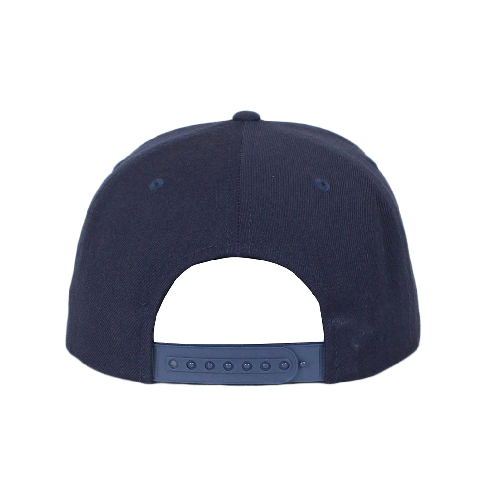 6パネルウールアクリルサージスナップバックキャップ後ろ調整はパチパチプラスチックストラップ。