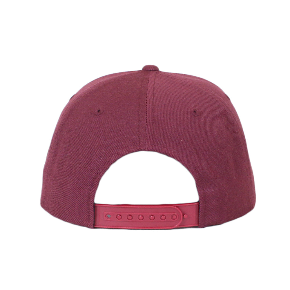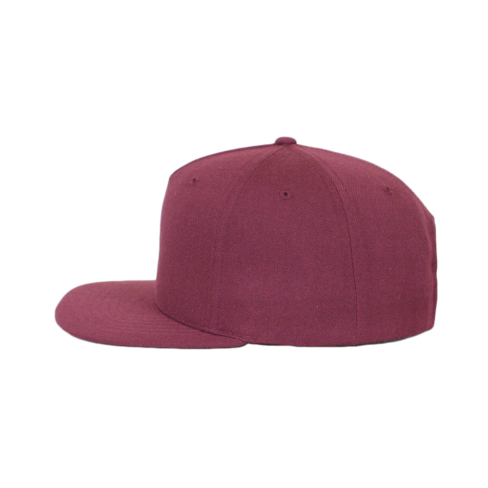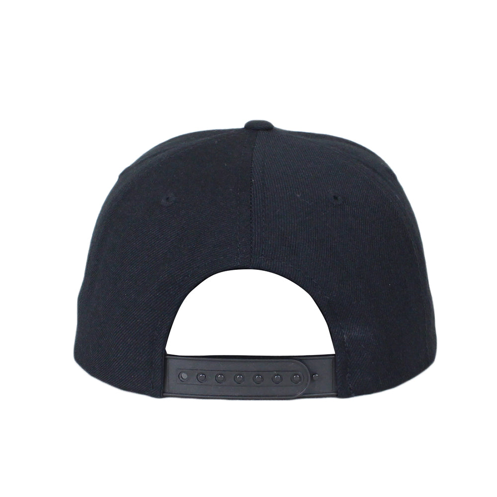 5パネルウールアクリルサージスナップバックキャップ後ろ調整はパチパチプラスチックストラップ。